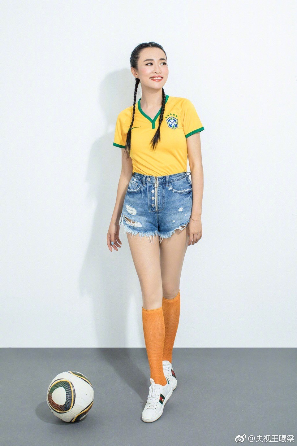 央视足球主播王曦梁运动风写真展现活力风采