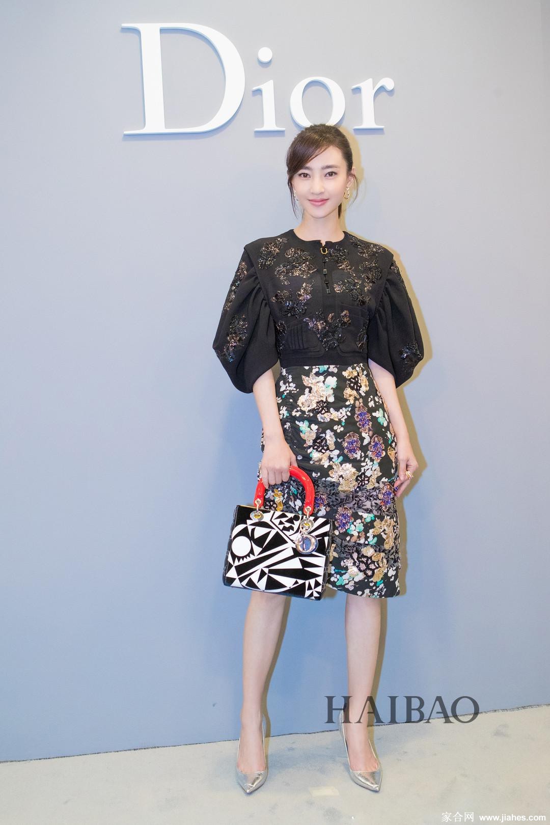 王丽坤身穿黑色短裙侧身站立,微风轻拂发丝,笑容恬静自然